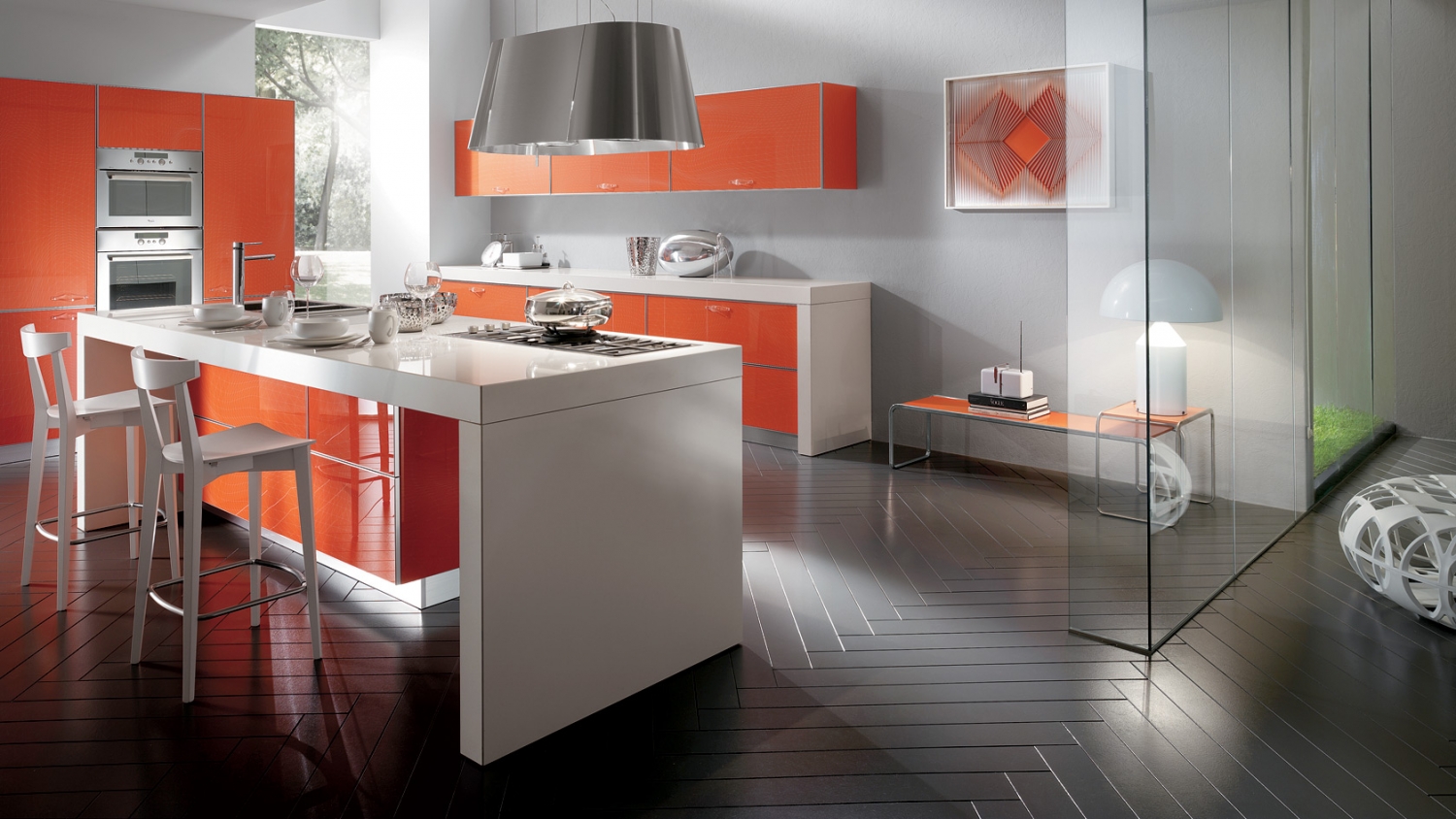 Moderní, propracovaný, geniální. Díky rámům dveří z hliníku a tvrzeného barevného skla, Crystal otevírá nové obzory funkčnosti a estetiky v kuchyni. Vyjadřuje "životní styl" a vynikající atmosféru.