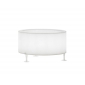 Stojací lampa Atollino Tavolino může sloužit jako odkládací stolek. Je dostupná v bílé nebo barevné směsi polyethylenu a dokola má nohy z bílého ABS plastu.
