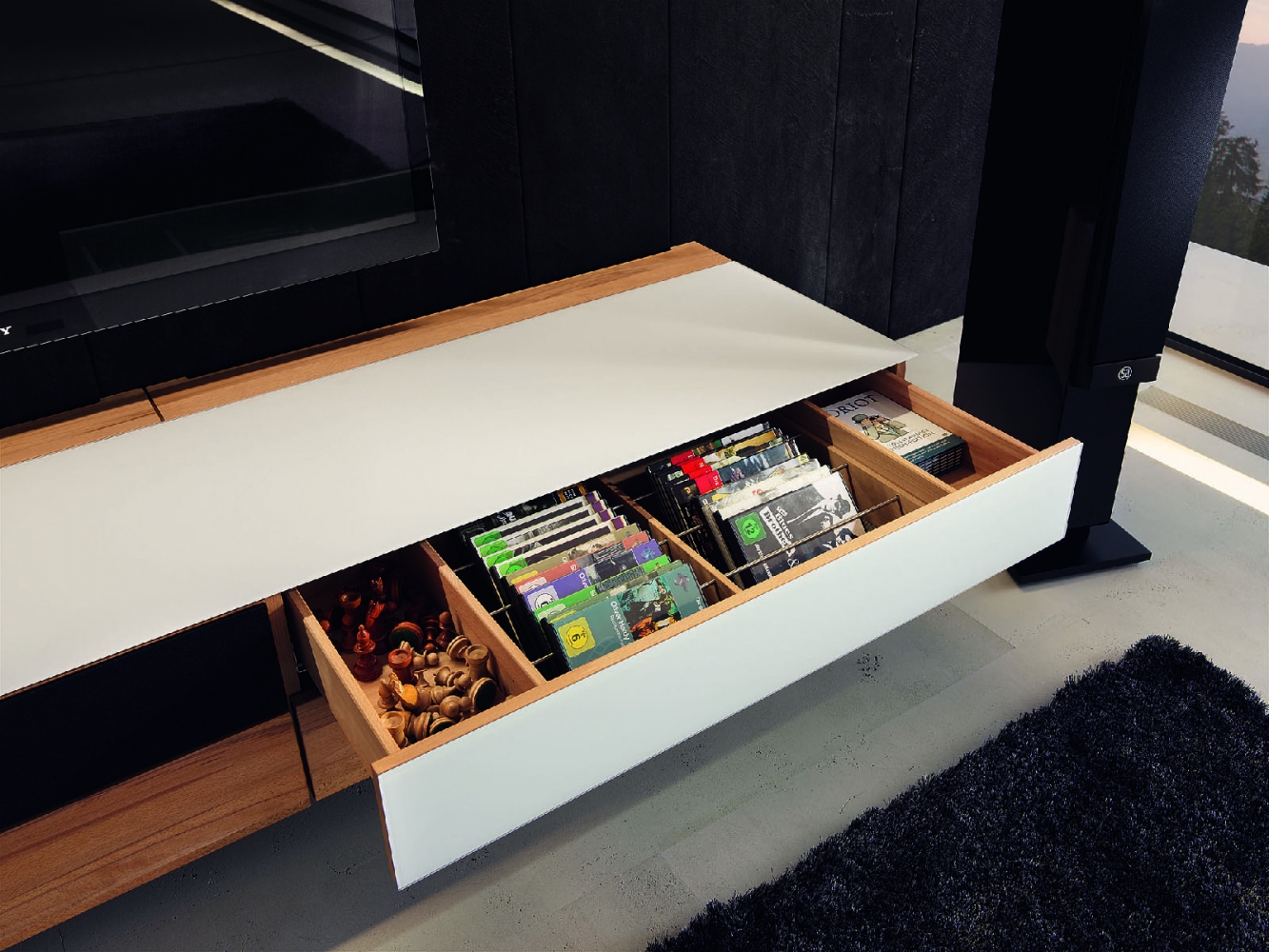 Cubus Home Entertainment program nabízí dokonalé řešení pro všechny oblasti – ať už jde o domácí kino, nebo o špičkové high end audio zařízení. U speciálních aplikací domácího kina se najde dostatek místa pro příslušné přístroje a surround sound systémy. Díky nábytku, který byl speciálně vyvinut pro high-end audio zařízení, se kvalitní technické přístroje výborně uplatní. Krycí desky z přírodního dřeva podporují optimální kvalitu zvuku. Inteligentně řešený vnitřek nábytkových prvků zajišťuje přehledné uspořádání kabelového systému se snadným přístupem a správné odvětrávání přístrojů. Dutiny pro umístění techniky poskytují místo pro nutné přídavné přístroje a silné kabely. Pro centrální reproduktor jsou k dispozici akustické výklopky potažené speciální černou látkou. Obývací stěna je k dispozici v provedení ze sedmi druhů dřeva.