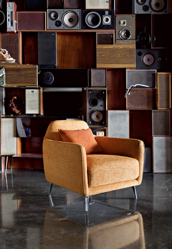 Křeslo Ellie má zcela odnímatelný potah z látky nebo mikrovlákna. Varianty potahů z kůže a umělé kůže jsou nesnímatelné. Kovové nohy jsou k dispozici ve třech barvách.