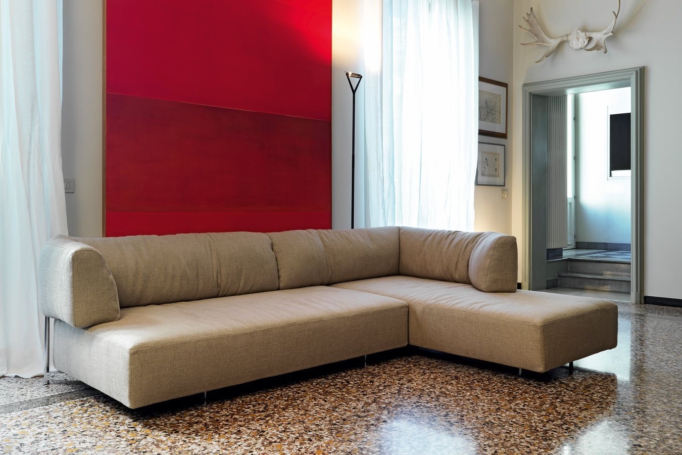 Sedací souprava obsahuje dvě jednotky, které lze různě konfigurovat – od lehátek naproti sobě až po provizorní postel. Patentovaný systém řídí pohyb jednotlivých prvků. Obě jednotky jsou vybaveny mechanickým uzamykatelným systémem, který drží opěradlo u sedáku. Opěradla vybavené spojovacími mechanismy lze otáčet. Polstrování tvoří polyuretanová pěna, peří a Gellyfoam®. Nohy jsou z chromovaného kovu.