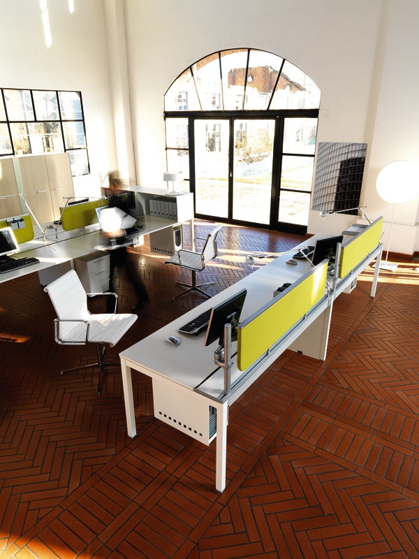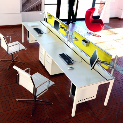 Unikátní zvláštnost Kosmosystemu je jeho společná struktura. Jinými slovy to pochází z logiky násobení – domino efekt. Z toho vyplývá nekonečno situací a možností využití – od samostatného stolu, přes kompaktní i střízlivé pracoviště až po ty nejsložitější kancelářské sestavy různých velikostí i typů. Tento systém byl koncipován pro moderní kancelář a má odvážný vhled a nápadnou modulární podstatu. Kosmosystem nabízí laminátové pracovní desky v barvách slonoviny, ořechu, wenge a dubu.