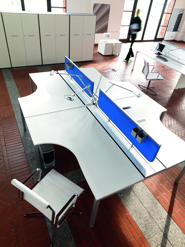 Unikátní zvláštnost Kosmosystemu je jeho společná struktura. Jinými slovy to pochází z logiky násobení – domino efekt. Z toho vyplývá nekonečno situací a možností využití – od samostatného stolu, přes kompaktní i střízlivé pracoviště až po ty nejsložitější kancelářské sestavy různých velikostí i typů. Tento systém byl koncipován pro moderní kancelář a má odvážný vhled a nápadnou modulární podstatu. Kosmosystem nabízí laminátové pracovní desky v barvách slonoviny, ořechu, wenge a dubu.