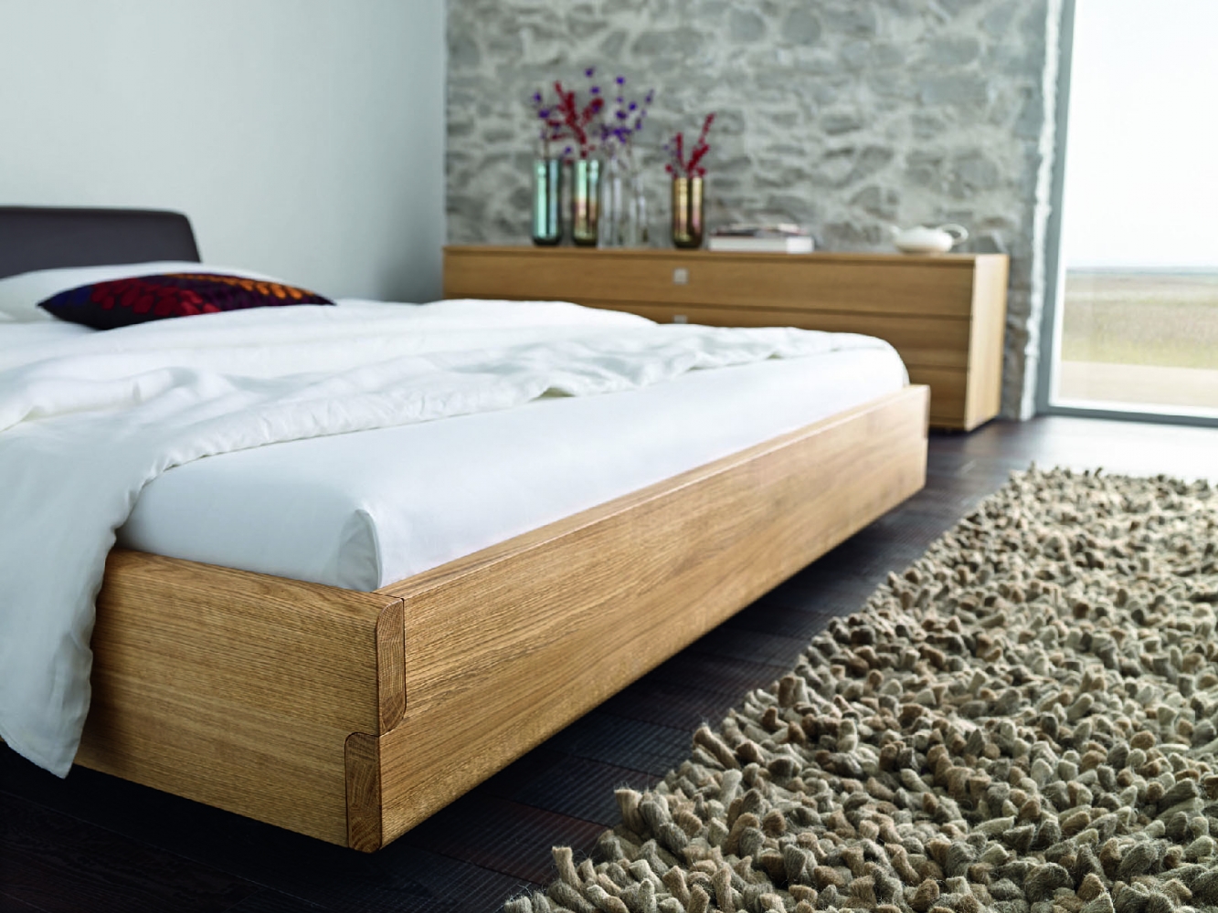 Charakteristické pro postel nox jsou 3,9 cm široké zaoblené hrany postele z přírodního dřeva. Viditelné dřevěné spoje u postranic jsou sjednoceny v rozích postele a tím jsou vytvořeny egantní S-křivky. Podsazené nohy dodávají posteli nox plovoucí vzhled.