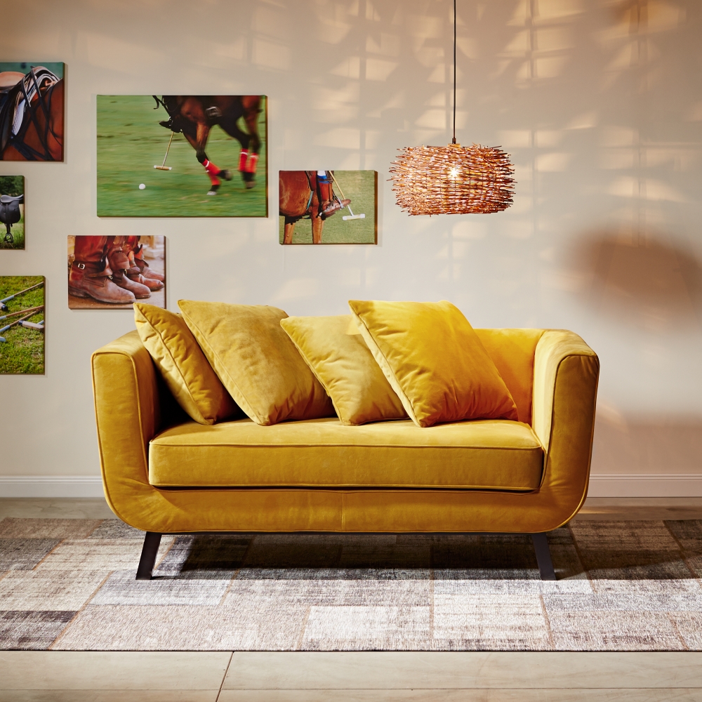 Tato moderní interpretace 60. let se před Vámi rozhodně neskryje, 2místná pohovka ze série Sallon upoutá Vaši pozornost oslňující žlutou barvou. Výrazný, ale příjemný tón se v prostoru doplňuje s klasickými barevnými koncepty jako je bílá, šedá, hnědá a černá. Nebo ji postavte poblíž jiných jasných barevných akcentů.