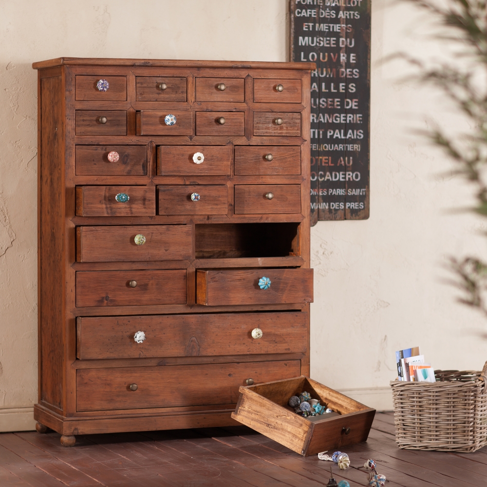 Zásuvky jsou nádherné. Jako perfektní správce uchová Vaše poklady v podobě spodního prádla, doplňků, či utřídí kancelářské a kuchyňské potřeby. Díky komodě Tobago s 20 praktickými zásuvkami je vše samozřejmě pohodlné. Je vytvořen v nadčasovém vzhledu rustikálního dřeva, místy připomíná starší trámy, dveře či někdejší skříň. Proto je každý kousek nejen s ohledem na barevný odstín opravdu unikát - výborně se kombinuje s moderním nábytkem.