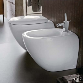 Vyberte si WC do koupelny v zaobleném nebo geometrickém designu, aby ladilo s ostatní sanitární keramikou. Můžete si také vybrat buď variantu závěsné WC nebo stojací. Ideálním řešením je kombinace WC a bidetu. V keramické míse WC je zabudovaná bidetová tryska.