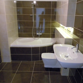 Mezonetové byty jsou k prodeji a developer věnoval velkou snahu aby byly zařízeny kvalitními zařizovacími předměty a mysel i na úsporu energií a vybavil například skleněné stěny trojsklem v energetické třídě A. Oba byty mají venkovní terasy s přípravou na SPA a parkovací stání. V následující fotogalerii se můžete podívat na ukázky z realizace.