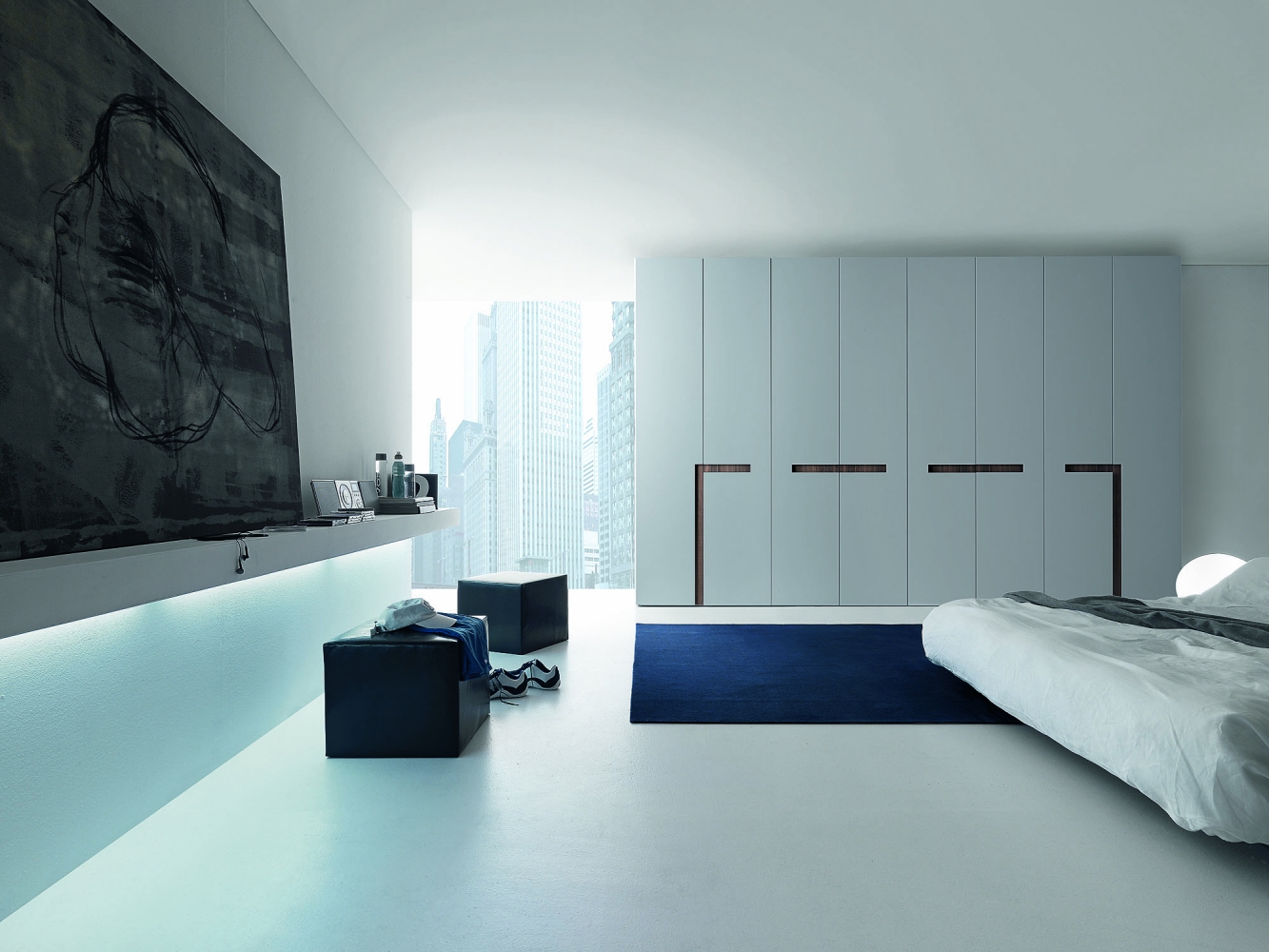 Většina si možná luxus v podobě vlastní šatny kvůli prostorovým dispozicím nemůže dovolit, a proto lze úložný prostor řešit pomocí klasických vysokých nebo vestavěných skříní v ložnici. Praktické jsou skříně s výškou až ke stropu – nemusíte řešit prach na skříni a využijete každý centimetr jako úložný prostor. Přihrádky v nejvyšších těžko dostupných místech skříně nejlépe poslouží k ukládání sezónních věcí a oblečení. Pokud zvolíte zrcadlová dvířka, dosáhnete optického zvětšení pokoje.