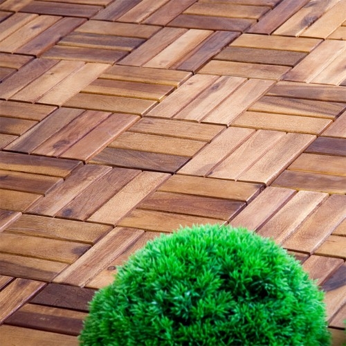 Dřevěné dlaždice z tropického tvrdého akátového dřeva mají rozměry: 30 x 30 x 2,4 cm. Spodním plastovým roštem je zajištěno odvětrávání, čímž se zvyšuje trvanlivost dřeva. Dlaždice jsou určeny pro vnitřní i venkovní použití.