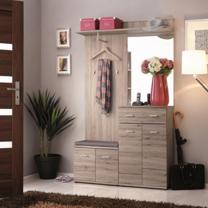 Předsíňová sestava bývá zpravidla složená z botníku, skříňky, věšáků, zrcadla, stoličky a odkládacího prostoru. Uschovejte všechny kabáty, bundy, čepice, rukavice, šály a boty tak, abyste to měli vždy při odchodu po ruce. Pro pohodlné obouvání bot se skvěle hodí pohodlná stolička či jiný prostor k sednutí. Nepostradatelnou součástí je zrcadlo. V předsíni také nesmí chybět odkládací prostor například pro klíče. Fotogalerie interiérů a inspirace pro bydlení - předsíňové sestavy.