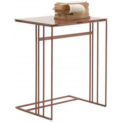 Antracitově šedá ocel nebo lakovaná měď se sklem.