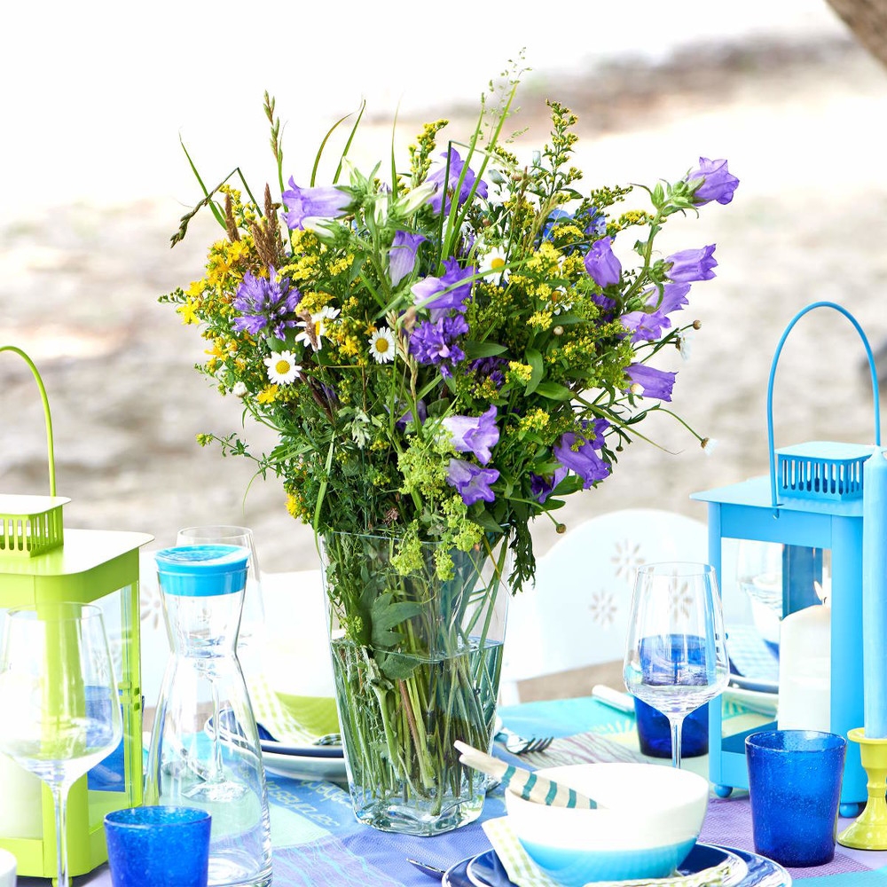 Čtyřhranná, dole zúžená váza. Decentní a mnohostranně využitelná.