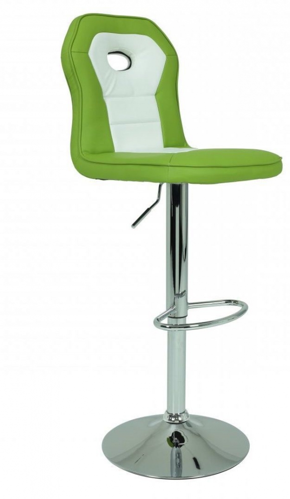 Moderní barová židleVýškově nastavitelnáPotah textilní kůžeKovová noha a podnož