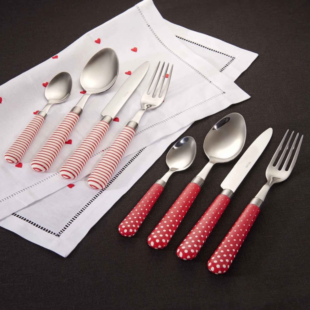 Na rukojeti nožů, vidliček a lžic dovádějí barevné puntíky, kostky a proužky ve stylu 50. let a opepří každé jídlo náležitou špetkou zábavy. To je možné jen u zcela výjimečných příborů BISTRO, exkluzivně v Butlers. Na rukojeti nožů, vidliček a lžic dovádějí barevné puntíky, kostky a proužky ve stylu 50. let a opepří každé jídlo náležitou špetkou zábavy. To je možné jen u zcela výjimečných příborů BISTRO, exkluzivně v Butlers.
