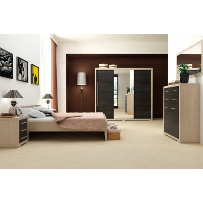Postel obsahuje laťový rošt, matraci je potřeba doobjednat. Postel je navržena v moderním duchu a vyznačuje se masivním vzhledem a zároveň jednoduchým tvarem. Nábytek je vyroben z kvalitního lamina 18 mm, desky mají 48 mm a vše je opatřeno ABS páskou. Postel se vyrábí v různých barevných variantách. Výška postele u hlavy je 70 cm, u nohou 40 cm, výška od země do boku postele je 20 cm.