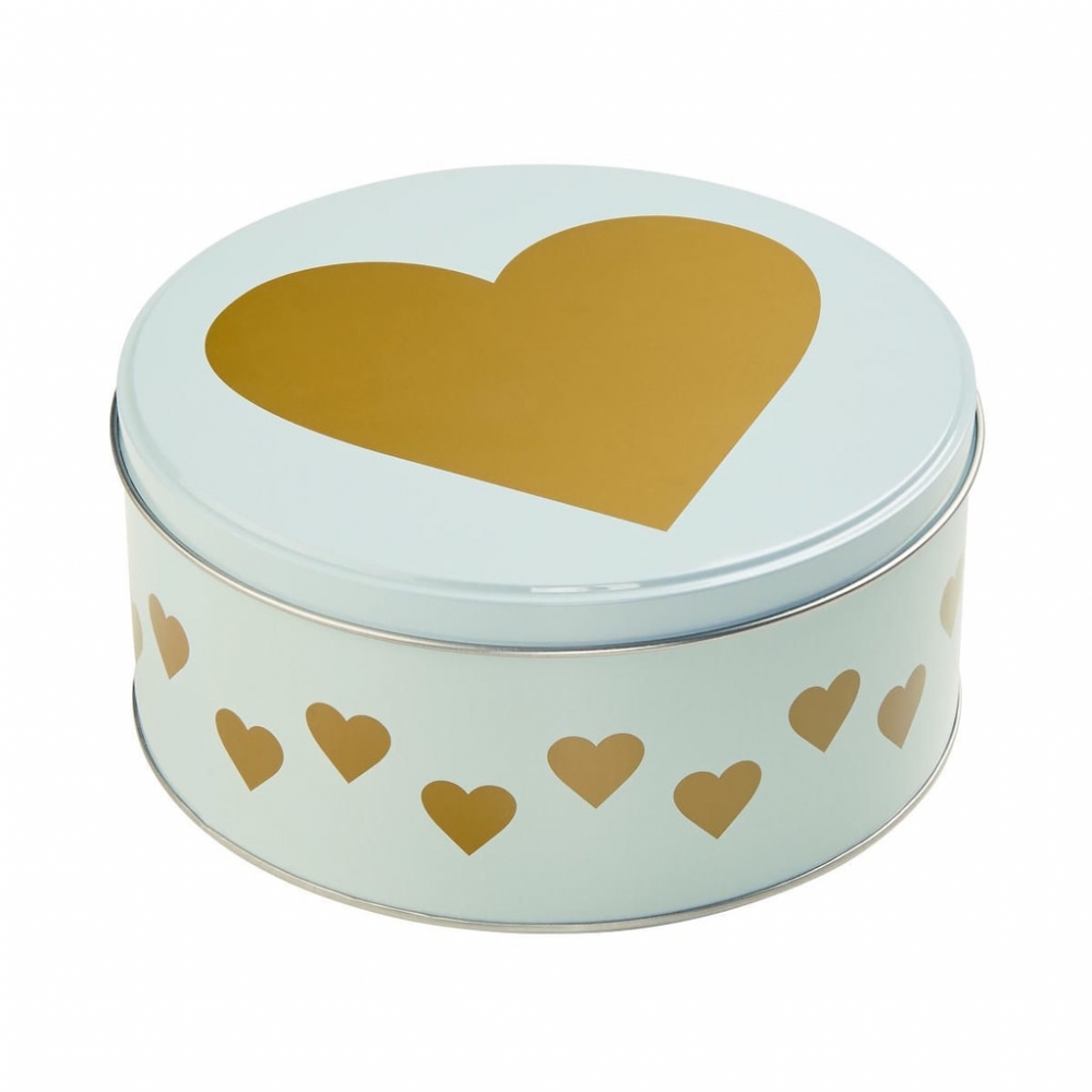 COOKIE JAR Dóza kulatá srdce 16,7 cm - sv. modrá/zlatá