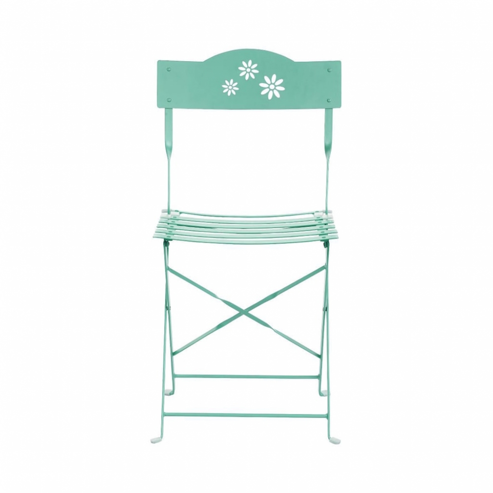 výrobek je dodáván sestavený Ve chvíli, kdy venku rozložíte skládací židli DAISY JANE z mátově zbarveného matného železa, začnou ptáci zpívat, sluneční paprsky tančit a barometr dobré nálady bude ukazovat lepší…