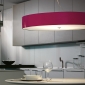 Závěsné svítidlo je dostupné v následujících variantách: bavlněná tkanina, polyester, lycra, PVC nebo skládaná látka. Krycí spodní panel je z opálového plexiskla.