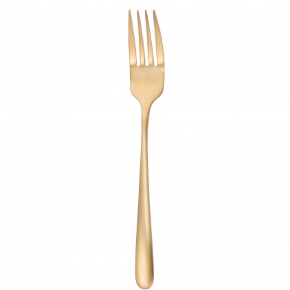 S příborem KINGS ve vzhledu žlutého zlata bude Vaše tabule skutečně královská. Nůž, vidlička, lžíce a čajová lžička perfektně padnou do Vaší dlaně a díky svému modernímu designu nasadí Vašemu stolování korunu. Vyrobeno z ušlechtilé oceli. K dostání i v dekoru matného stříbra a růžového zlata.