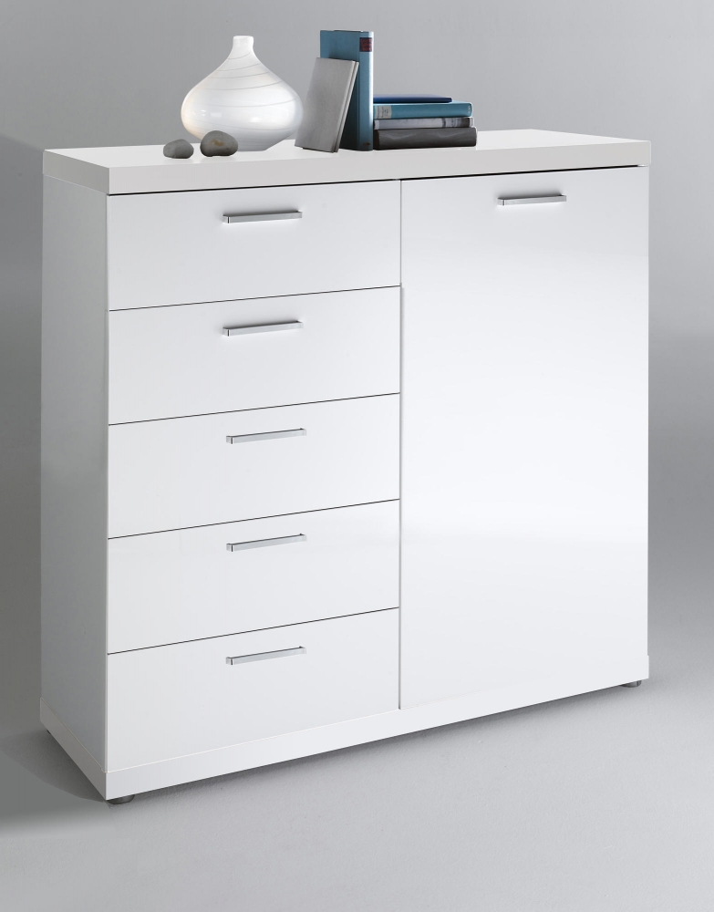 Moderní, kombinovaná komoda s lakovaným povrchem