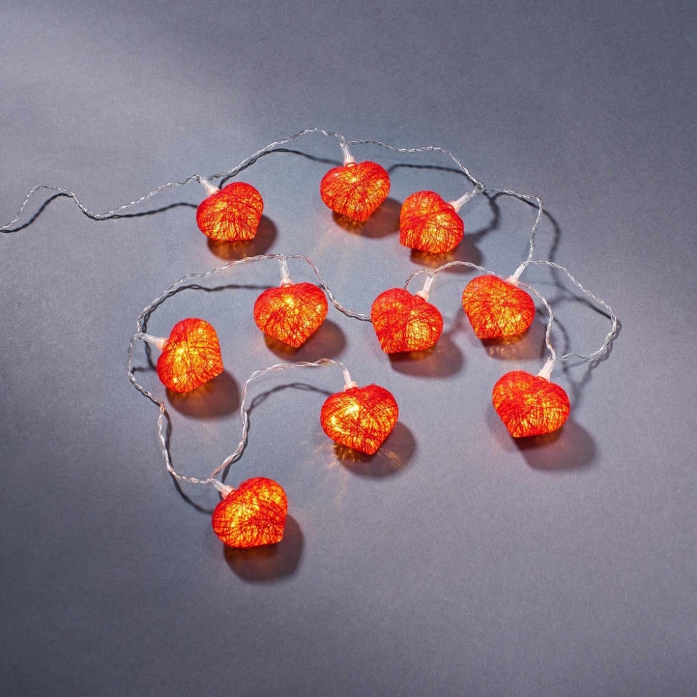 pro vnitřní použití Při rozsvíceném světelném řetězu LOVE LIGHTS LED poskočí srdce každému, kdo miluje efektní dekorace. Každé světýlko tohoto řetězu na baterie je oděno do červeného závoje a všech 10 světel ve tvaru srdce si Vás díky těmto šaramantním detailům obtočí okamžitě kolem prstu.