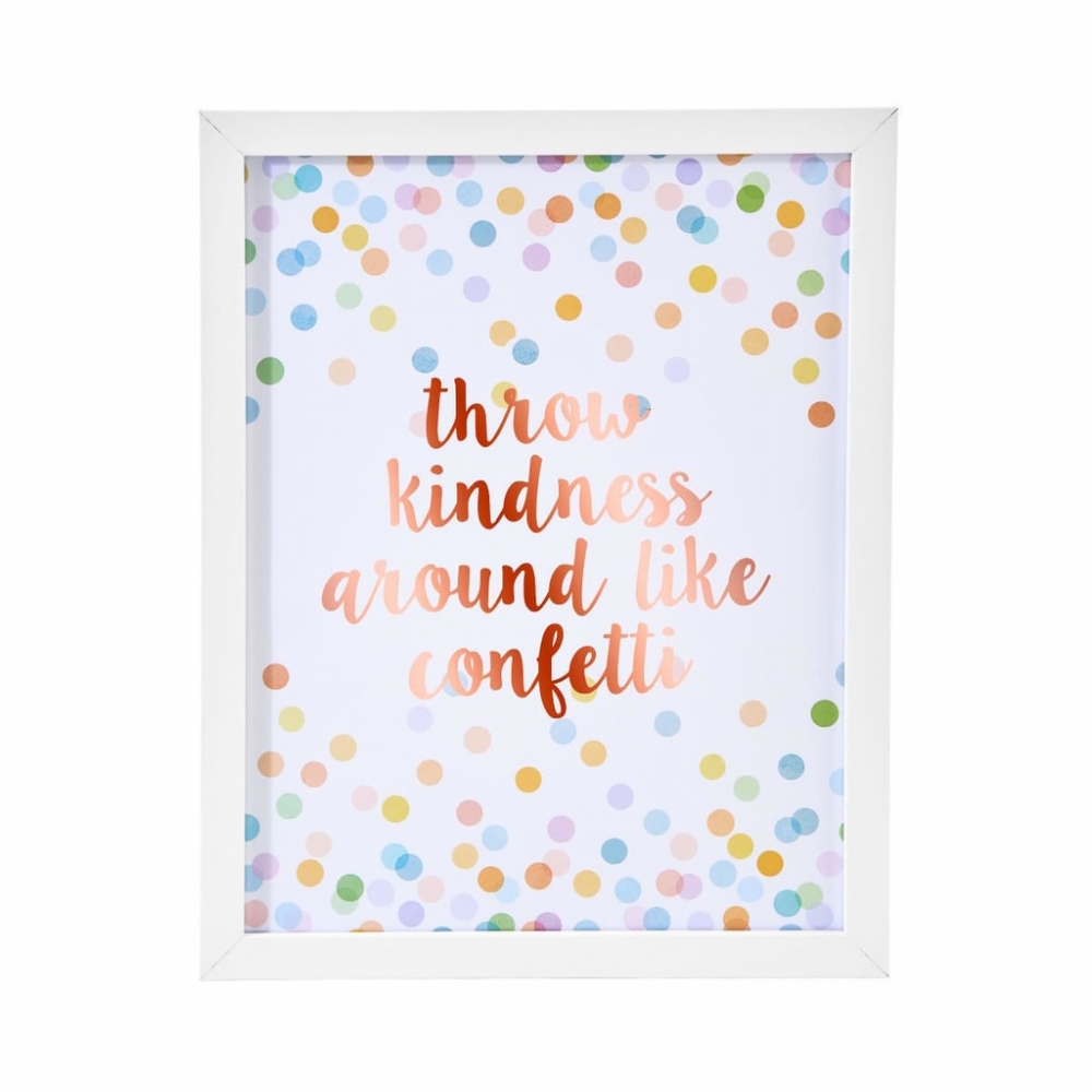 Úplná báseň na pohled. Zarámovaný obraz s výrokem "Throw kindness around like confetti" bude moderní výpovědí Vašeho životního mota a inspirující hlášky pod sklem. Dokonalá a osobitá dekorace pro Váš domov. K dostání další varianty. Úplná báseň na pohled. Zarámovaný obraz s výrokem "Throw kindness around like confetti" bude moderní výpovědí Vašeho životního mota a inspirující hlášky pod sklem. Dokonalá a osobitá dekorace pro Váš domov. K dostání další varianty.