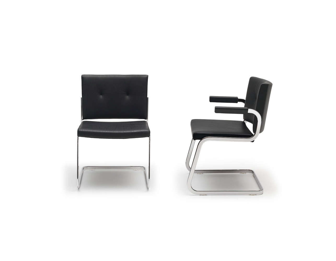 Židle, která byla navržena již v roce 1950, neztratila nic ze své elegance a stylu. Toto židle z reedice má oproti původní ikoně poněkud štíhlejší čalouněný povrch, její výška sedáku byla mírně upravená a rám přizpůsobený novým požadavkům. K dispozici je verze s područkami a také provedení bez prošívání a knoflíků. Jinak zůstala tato švýcarská klasika nedotčená.