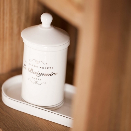 K tomu, aby byl Váš soukromý salon krásy ještě o něco hezčí, vytvořil Butlers řadu SALON BEAUTÉ s půvabnými toaletními potřebami z kameniny. Odkládací dóza z této série bude stylovým pomocníkem na skladování mýdla, tyčinek, odličovacích tampónků a dalších kosmetických nezbytností. Od dávkovače mýdla až po zásobník na kapesníky jsme vytvořili všechno, co přispívá k zajištění denního programu krásy.