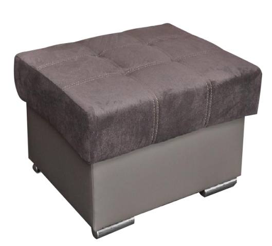 Moderní solitérový taburetVhodný doplněk k sedací soupravěÚložný prostor pod sedákem Kombinace textilní kůže a látkyVýrazně prošívaný sedákElegantní kovové nožky