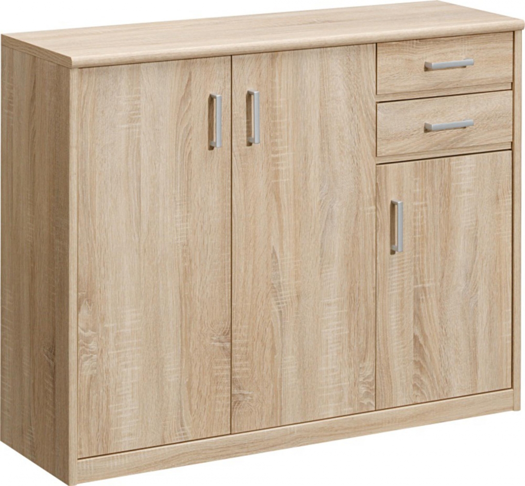 Moderní, víceúčelová komodaKombinace dvířek a zásuvek poskytne dostatek úložného prostoruMateriál snadno udržovatelné laminoZásuvky s kovovými pojezdyDodáváno v demontovaném stavu