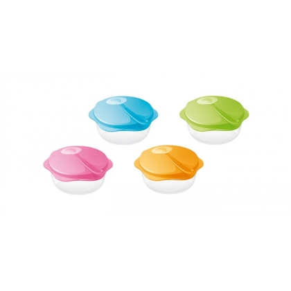 Vynikající pro šetrné skladování a podávání dětských pokrmů při cestování i v domácnosti. Opatřeno dobře těsnícím víčkem a dětskou lžičkou hygienicky uloženou ve víčku. Vyrobeno z prvotřídního zdravotně nezávadného plastu, vhodné do ledničky, mrazničky i mikrovlnné trouby (bez víčka). Vhodné do myčky. 3 roky záruka.
