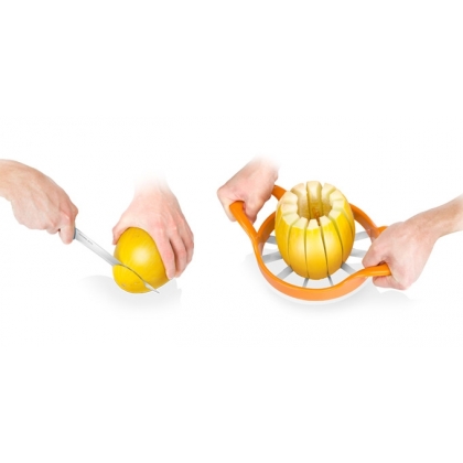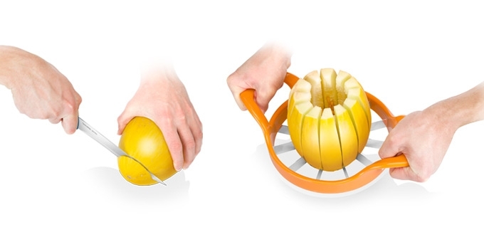 Vynikající pro snadné a rychlé porcování cukrových melounů typu Galia, Cantaloupe, Piel de Sapo, žlutých melounů Honeydew a vodních melounů do ¤ 20 cm na 12 stejných dílů. S ochranným krytem čepelí pro bezpečné skladování. Vyrobeno z prvotřídní nerezavějící oceli, masivní rukojeti a kryt z odolného plastu, vhodné do myčky. 3 roky záruka.