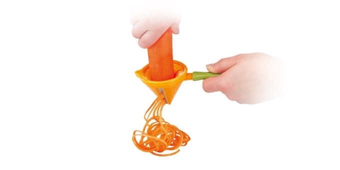 Určeno pro přípravu ozdobných nudliček z mrkve, okurek, bílé ředkve apod. Vyrobeno z prvotřídní nerezavějící oceli a odolného plastu, vhodné do myčky. Dodáváno s ochranným krytem pro bezpečné použití a skladování. 3 roky záruka.