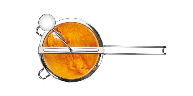 Sítem GrandCHEF snadno propasírujete doměkka uvařenou nebo upečenou kořenovou zeleninu, brambory, dýně i konzervovaná rajčata.